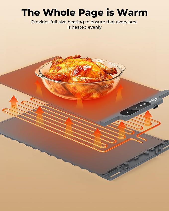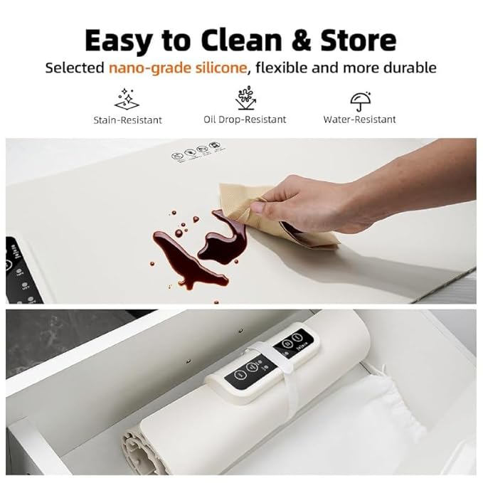 Say goodbye to bulky warmers! This sleek, roll-up mat heats the entire surface evenly and tucks away in a drawer when not in use. Perfect for dinner parties 🥂, holiday gatherings 🎄, or simply elevating your everyday meals.